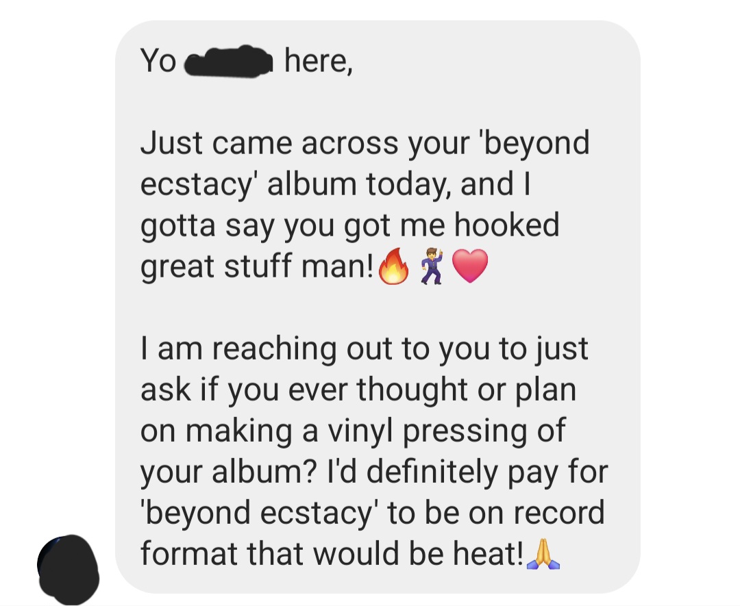I dropped my debut electronic album (called 'beyond_____(ECSTASY)') in 2024, and it got over 250,000 streams in the same year. I was surprised (and very pleased!) by the extremely positive reception to an independent artist, but...